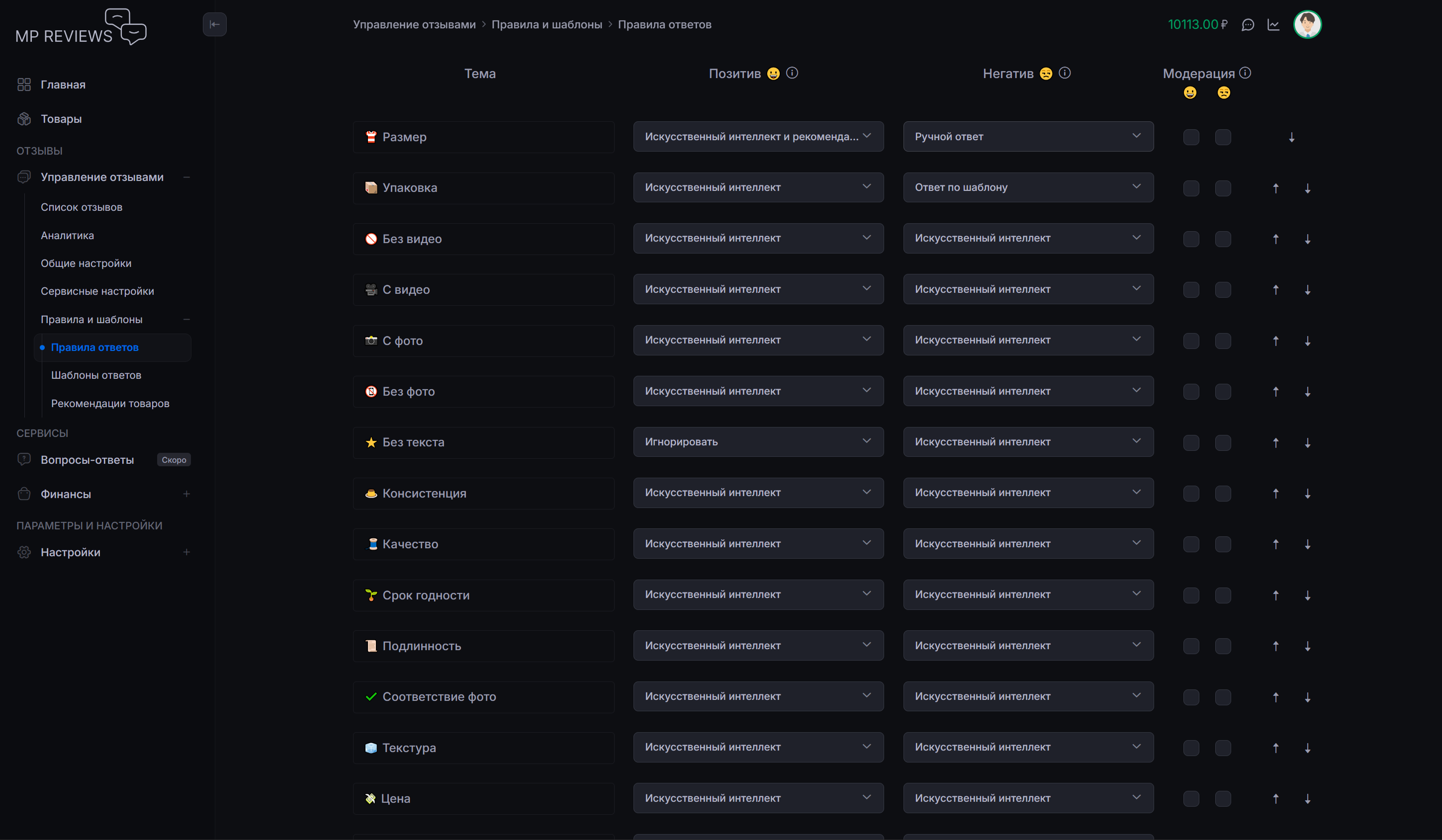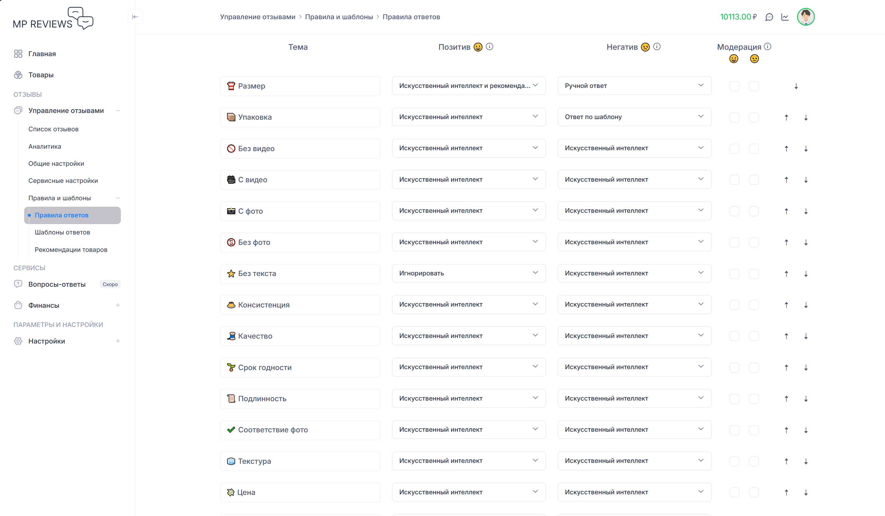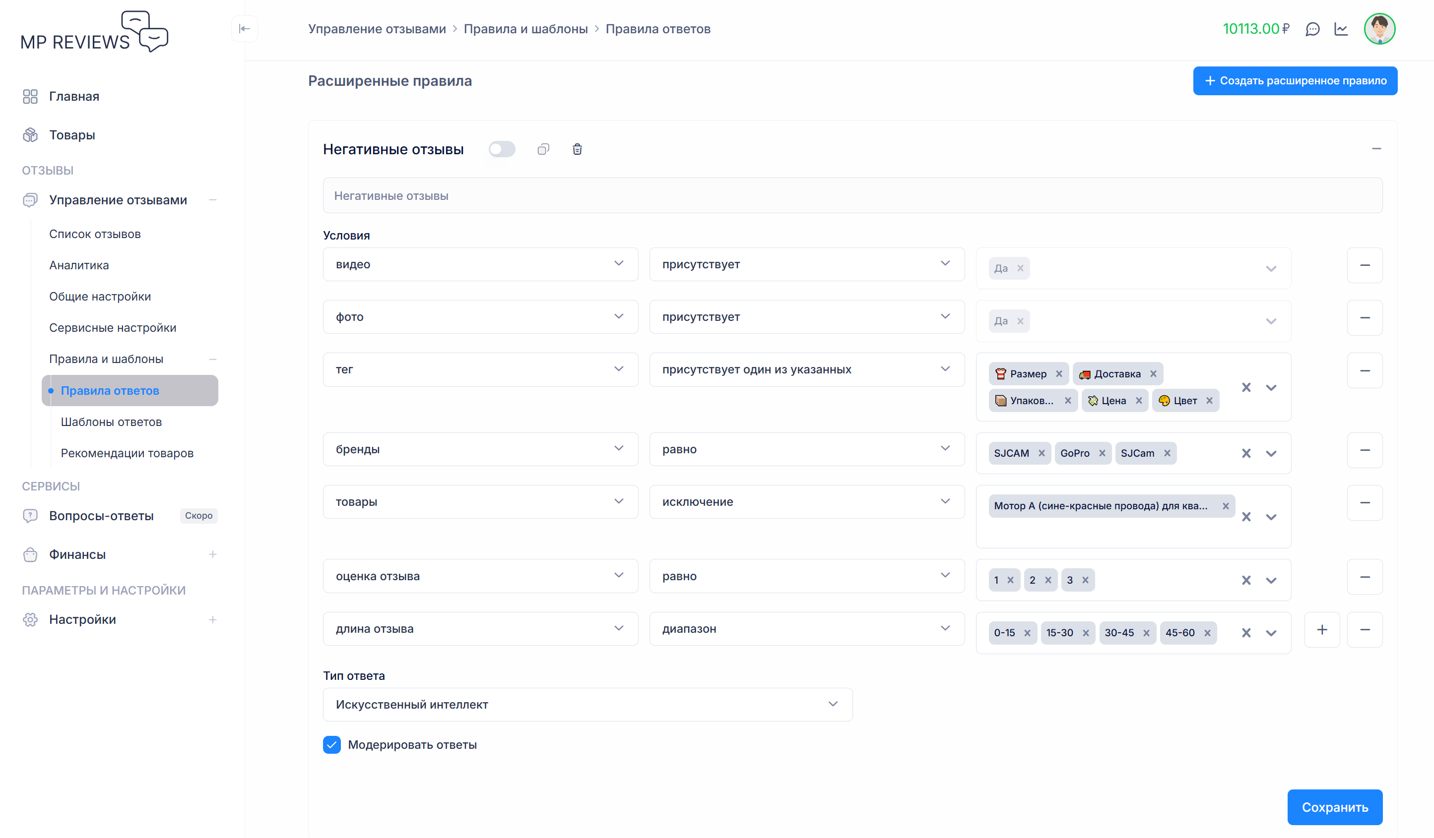 Настройте правила обработки отзывов под свои задачи и забудьте о ручных ответах!